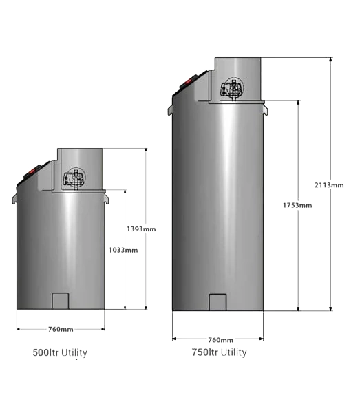 500ltr = 40 kg | 750ltr = 55 kg | 1,000ltr = 80kg |