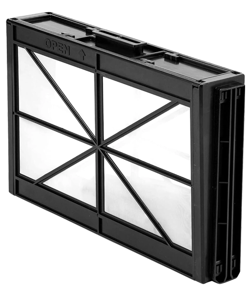 Dual cartridge 5 micron filters, top access for easy removal and cleaning