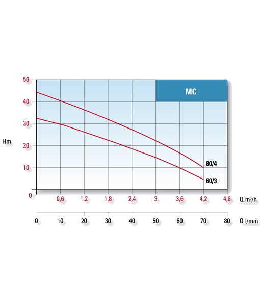The MC is particularly suited to use in applications, not limited to, but including high-pressure irrigation and car washing systems. It is recommended that the MC pump is used only with chemically pure liquids that are free from particles with a temperature not greater than 40°C.