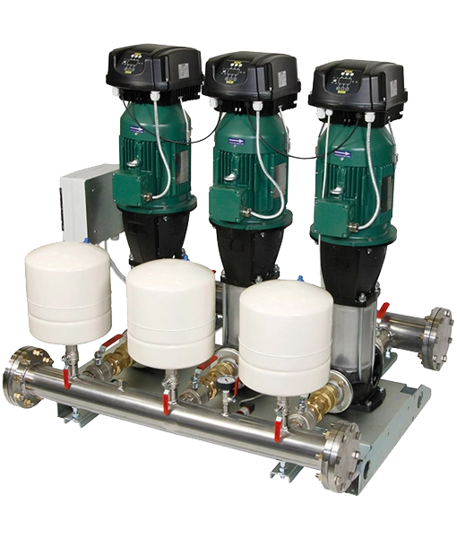 Triple multi-impeller vertical centrifugal pumps with MCE-P variable frequency drive installed as standard