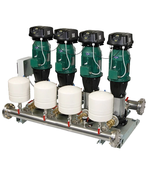The other pumps, also with variable speed, are activated in cascade after the first one has reached maximum speed. Through modulation, they compensate the pressure fluctuations of the system.