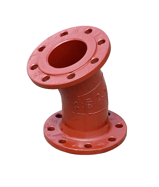 Ductile Iron 22.5° Bend, PN16 Double Flanged, Red Epoxy Coating for Water & Sewage