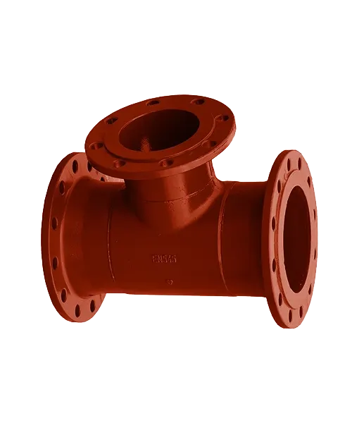 Ductile Iron All Flanged Tee, PN16, Red Epoxy Coating for Water & Sewage