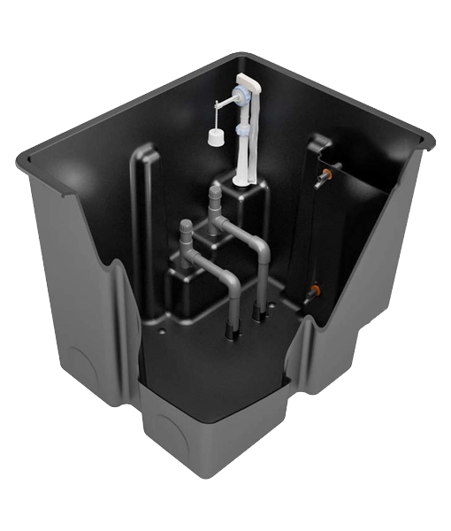 Smart header tank uses 6-8 times less energy than direct pumped system, the header tank is filled by the pump and then does not use the pump again until virtually all of the water is used. This ‘batch filling’ process means the pump cycles 1-2 times per day, in comparison to every time a toilet is flushed with traditional systems