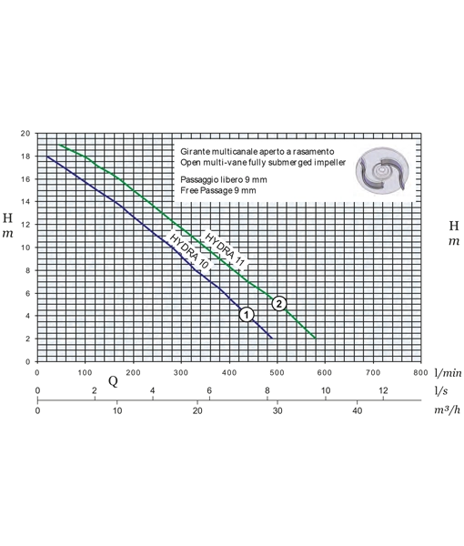 Maximum flow 580 litres per minute, maximum head 19m