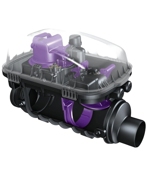 In the event of backwater, the pump macerates any solids and discharges the waste water against the backwater pressure into the main drain.