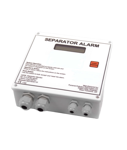 Our mains powered separator alarm can be used to monitor the oil level in oil separators, the control unit is capable of monitoring up to three probe units, displaying their current status via a 2 x 16 display.