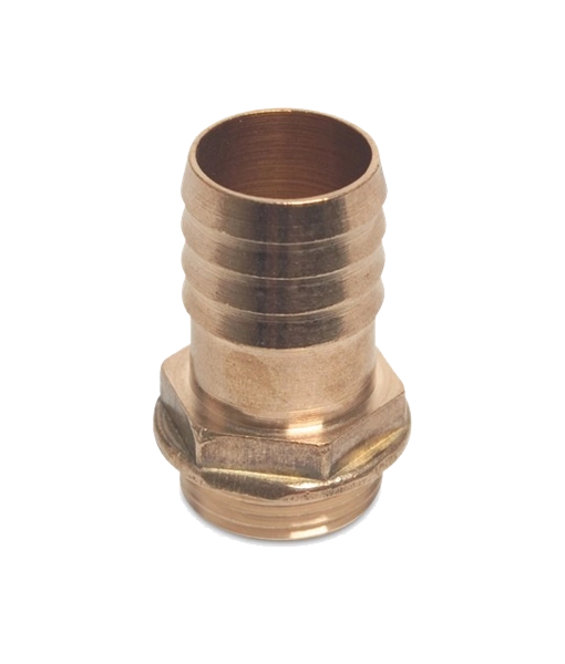 Brass hose tail with barbed fitting to male BSP thread for connecting layflat or suction hose to discharge outlet on pumps.