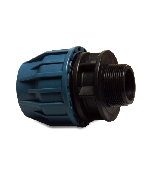 These polypropylene compression adaptors come in a range of sizes to fit PE pipework from 40mm to 110mm in diameter and the male BSP thread will fit sockets up to 4 inch.