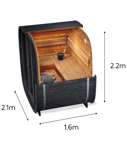 Equipped with integrated white LED strips behind the seat backs for a relaxing atmosphere, the Onyxia Cube is compatible with stoves from 4.5kW (no stove is included) for heat tailored to your preferences.