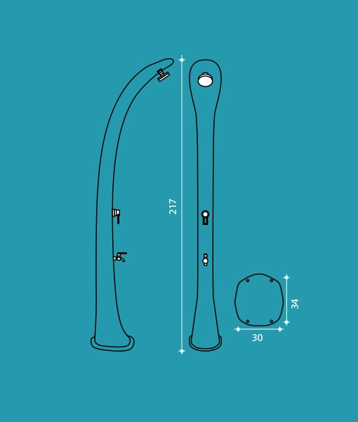 The shower features a rain effect adjustable shower head, a mixer to easily set water temperature, a foot rinse tap to rinse your feet before entering the pool and an enlarged base for more stability and reduced pressure.