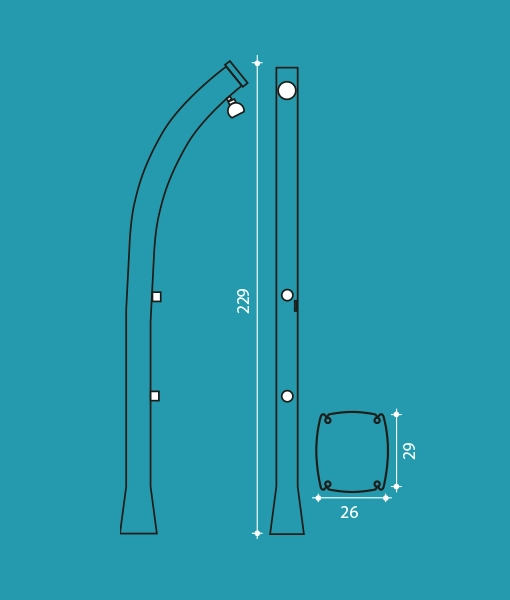 The shower features a rain effect adjustable shower head, a mixer to easily set water temperature, a foot rinse tap to rinse your feet before entering the pool and an enlarged base for more stability and reduced pressure.