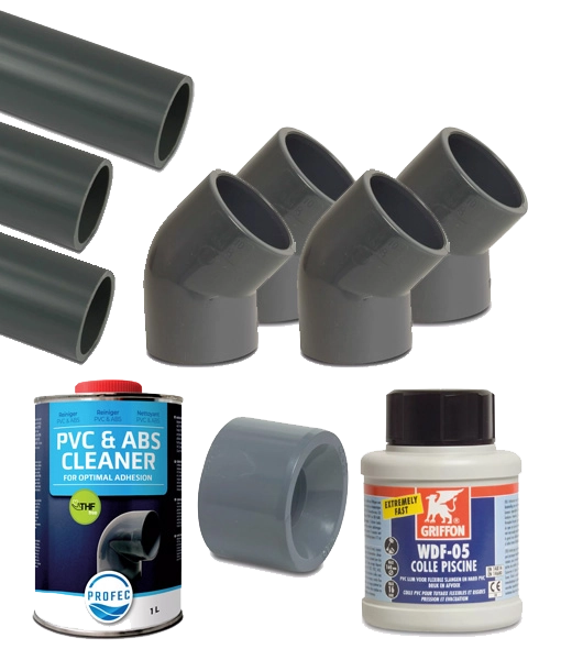 Our pipework connection kit for the STP Counter Current contains the pipework and fittings you will need to connect the STP counterflow front panel to the pump.