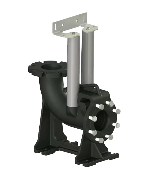 The guide rail kit allows full free passage of pumped liquids and the pump intake port is kept at optimal height, meaning there is no need to provide a step in the bottom of the tank.