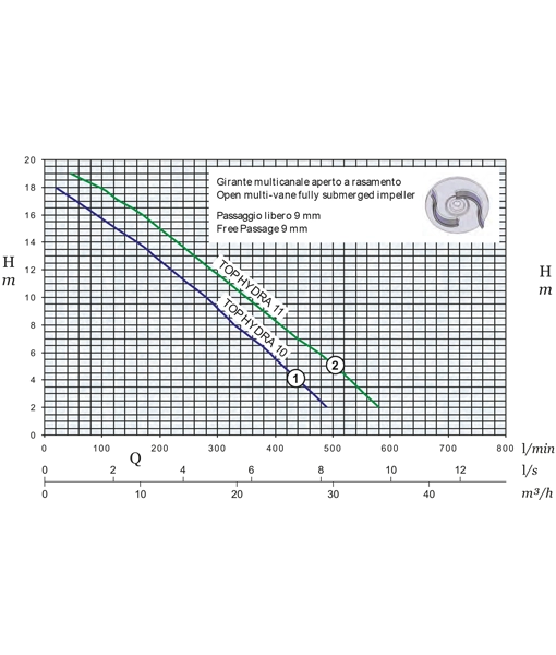 Single phase models feature built-in capacitor motor protection (TOP HYDRA 8M, 8MG, 11M and 11MG have external control box), three-phase models require external capacitor protection (not provided)