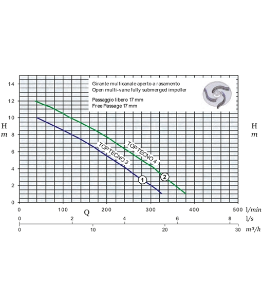Open multi-vane fully submerged impeller