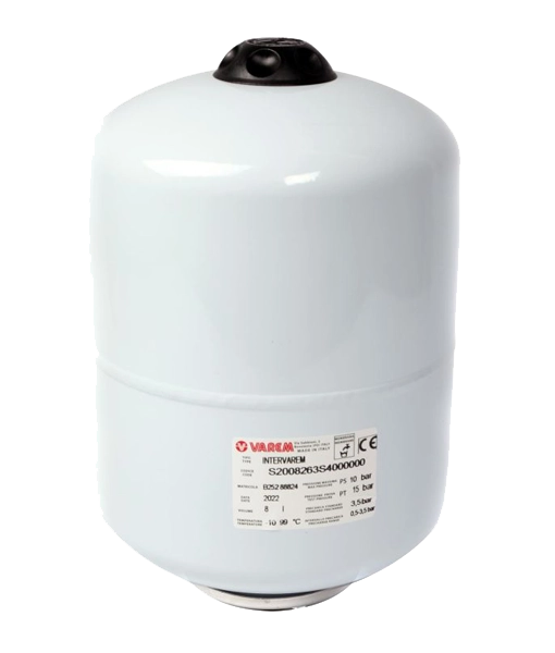 The pressure vessels contain a replaceable rubber membrane, and come with a Stainless Steel 304 flanges, brass pre-charge valve and a red epoxy paint finish (2L and 8L are coated in white paint).
