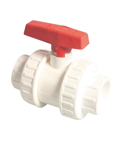 These are PVC double union valves with solvent cement sockets and EPDM seals.