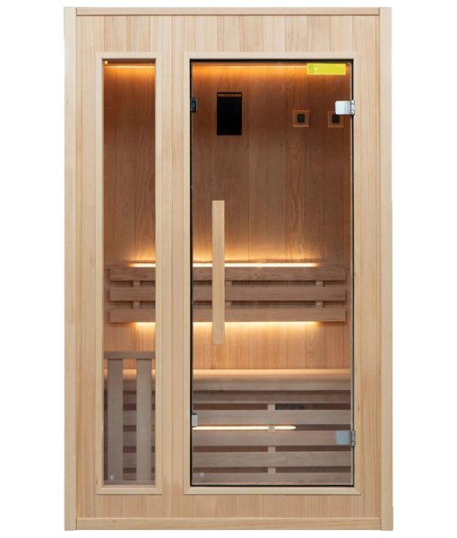 The sauna is equipped with soft lighting situated at the corner top and beneath the bench for a relaxed enjoyable atmosphere.